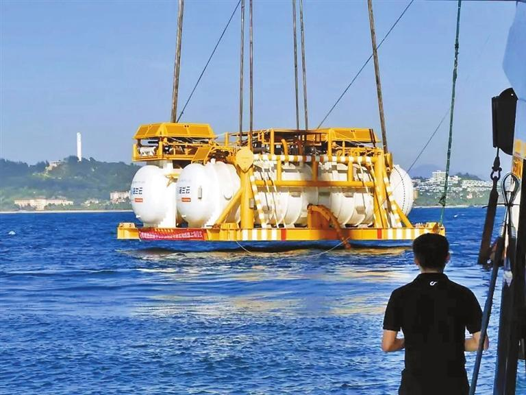 하이난성 앞바다로 옮겨지고 있는 중국 최초의 상업용 수중 데이터 센터 모듈. 파일 사진