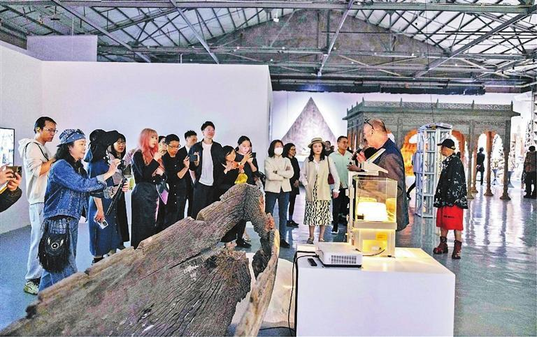 제10회 선전·홍콩 도시·건축 비엔날레(UABB)의 일환인 ‘패럴렐 유니버스(Parallel Universe)’ 전시를 관람하는 방문객들. 이 전시는 지난해 12월 선전 OCT 현대미술 터미널에서 개막했다. 황제위