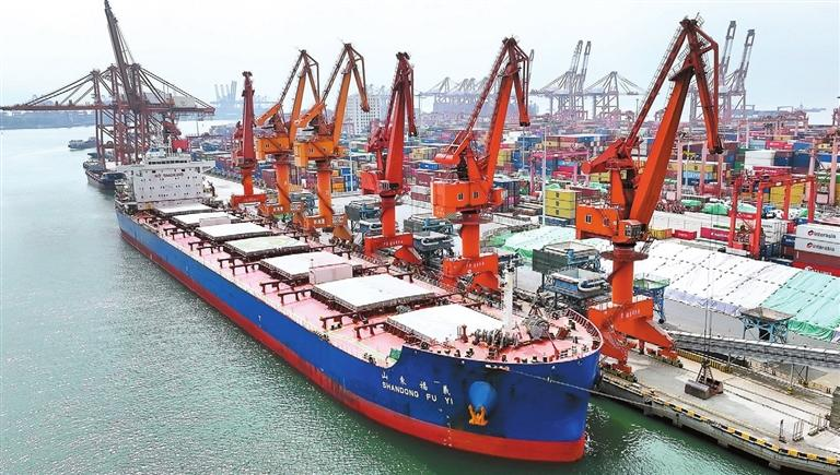 아르헨티나산 밀 수송선이 선전 서커우항에 도착했다. (사진: 양하오한)