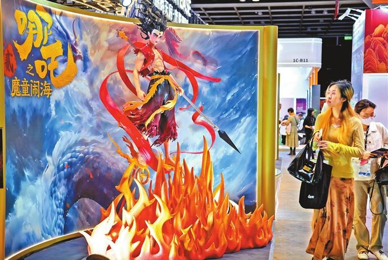 어제 홍콩 컨벤션전시센터에서 방문객들이 애니메이션 영화 「나타 2」의 캐릭터 ‘나타’를 주제로 한 전시물을 지나가고 있다. 같은 날 이곳에서는 제30회 홍콩 국제 영화·TV 마켓(FILMART)과 제4회 엔터테인먼트펄스 포럼이 개막했다.